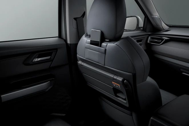 Tersedia slot tipis di bagian belakang kursi untuk menyimpan smartphone atau perangkat tipis lainnya sehingga mudah dijangkau.